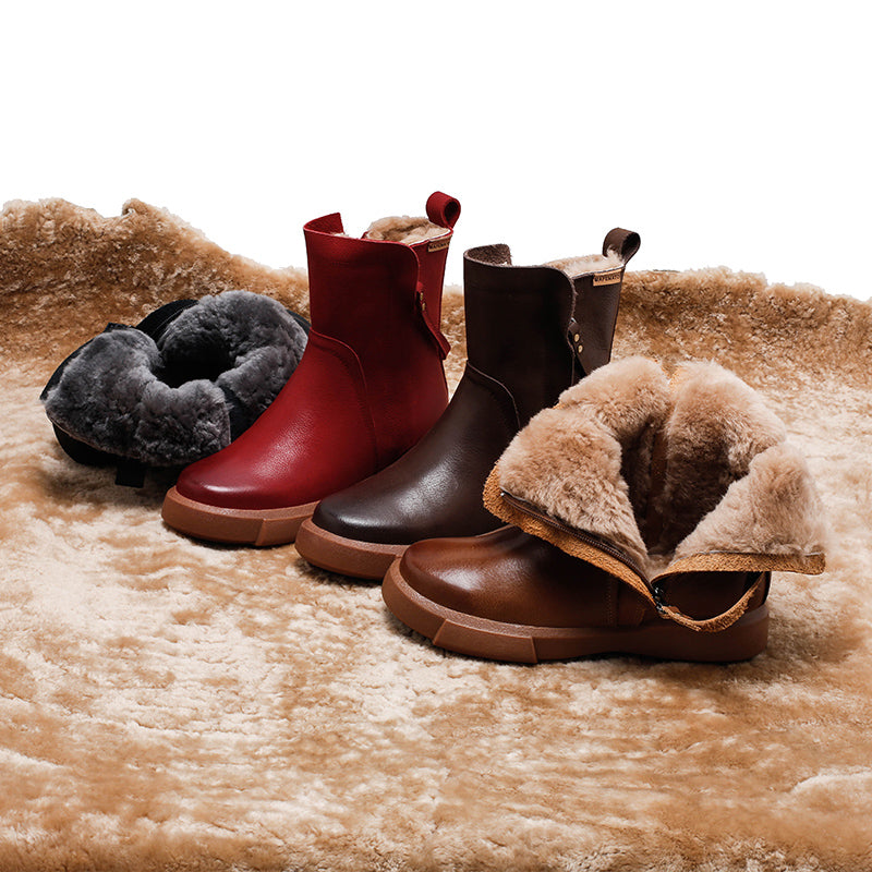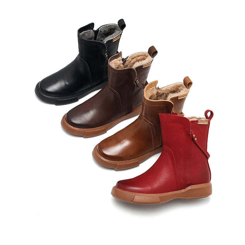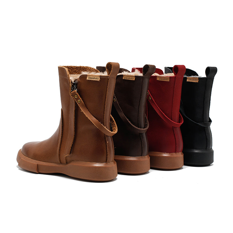 Dwarves Handmade Winter Snow Boots Double Zip Fleece Lined British Short Boots in 4 Colors