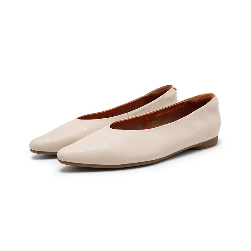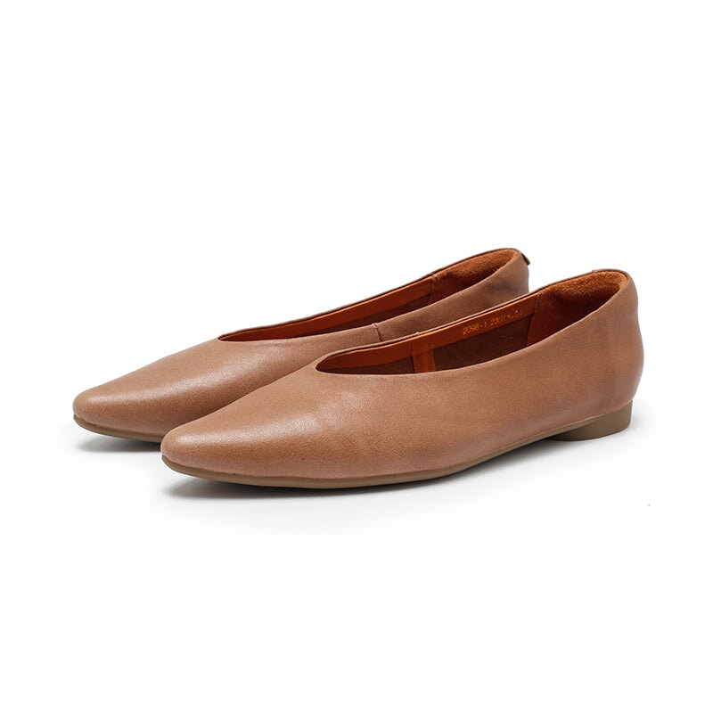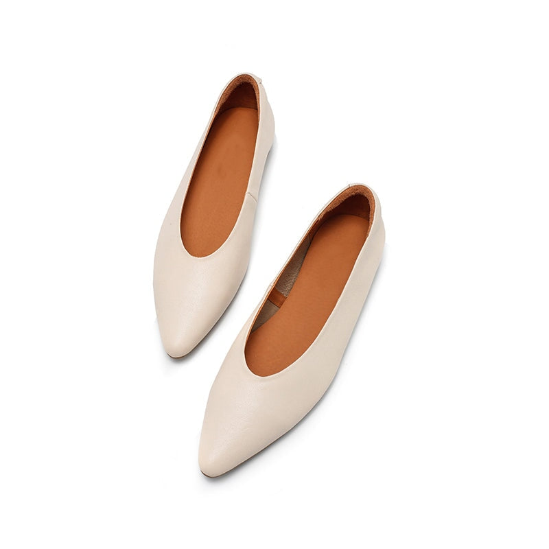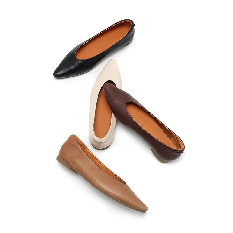 Dwarves Minimalist Vegetable Tanned Sheepskin Leather Pointed Toe Flat Shoes in Khaki/Beige/Black/Coffee