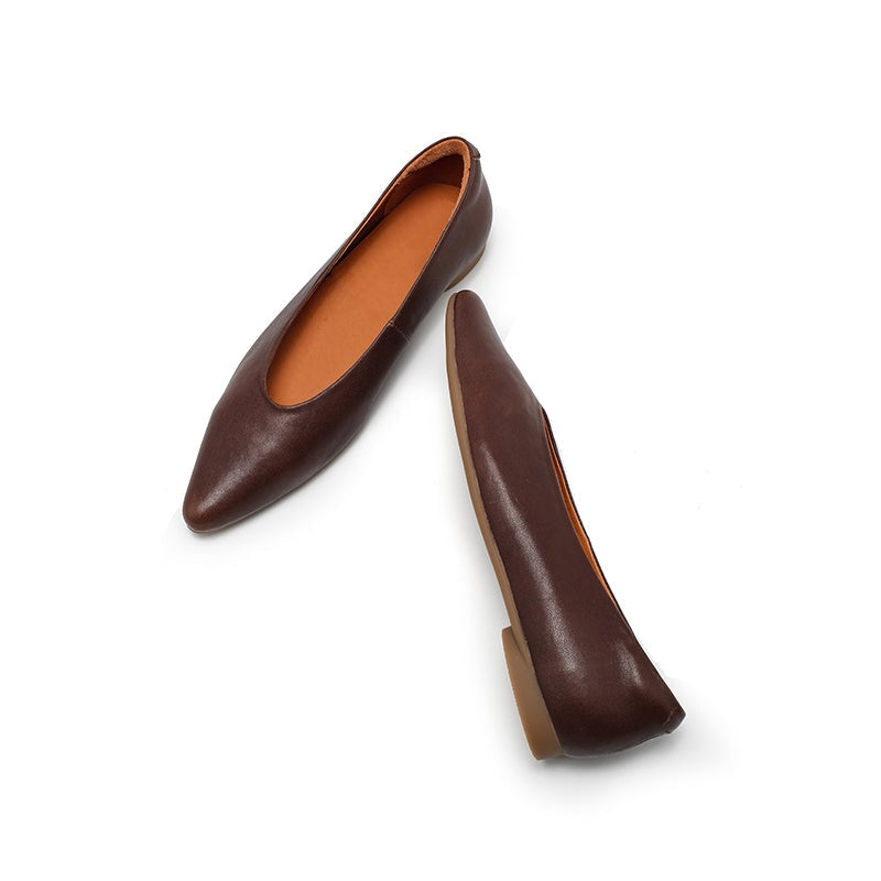 Step into simple elegance with these minimalist point toe flats from Dwarves. Handcrafted from premium vegetable-tanned sheepskin leather, they offer a soft, breathable feel with natural texture. The flexible rubber sole ensures all-day comfort for casual wear. Perfect for effortless daily styling with a touch of artisan charm.