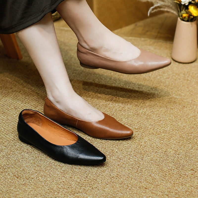 Step into simple elegance with these minimalist point toe flats from Dwarves. Handcrafted from premium vegetable-tanned sheepskin leather, they offer a soft, breathable feel with natural texture. The flexible rubber sole ensures all-day comfort for casual wear. Perfect for effortless daily styling with a touch of artisan charm.