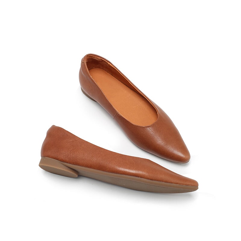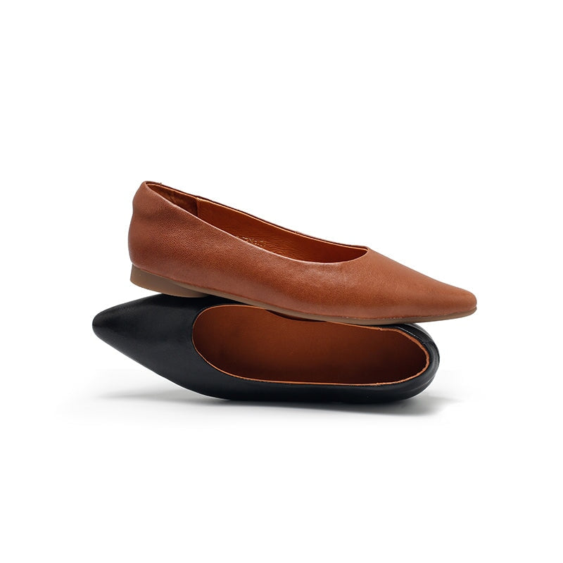 Dwarves Soft Vegetable Tanned Sheepskin Leather Pointed Toe Flat Shoes in Brown/Cameo Brown/Black