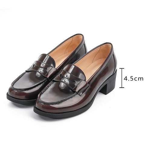 Enamel leather Penny Loafers Handmade Uniform Shoes Black/Brown 4.5cm Heel