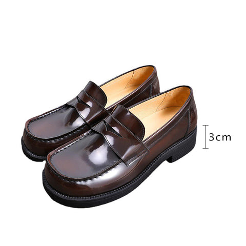 Enamel leather Penny Loafers Handmade Working Shoes Black/Brown 3cm Heel