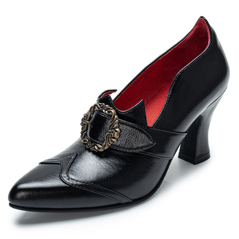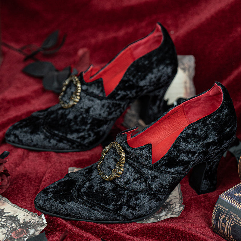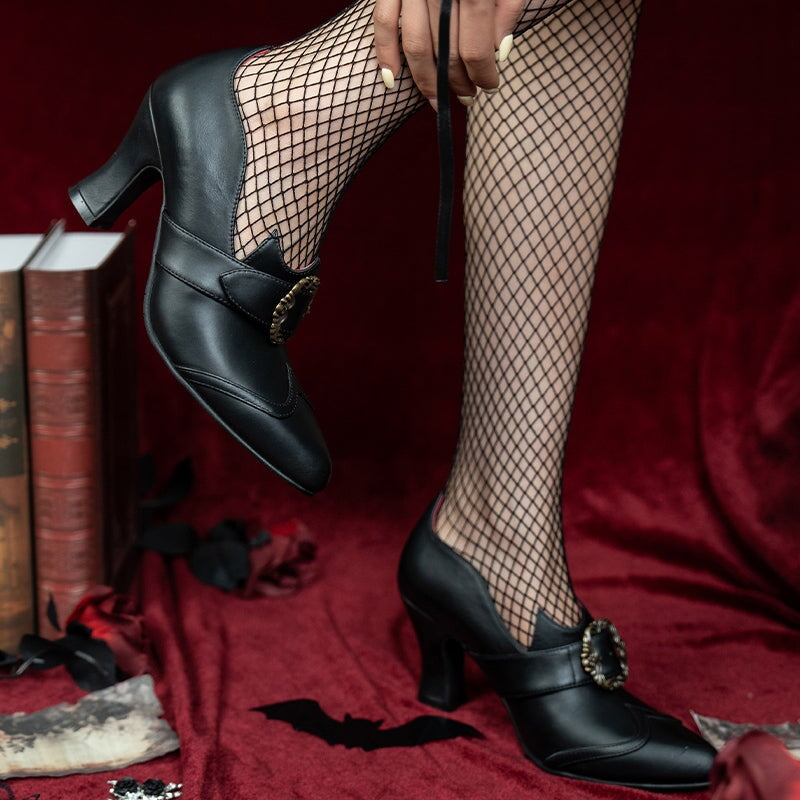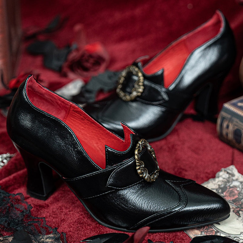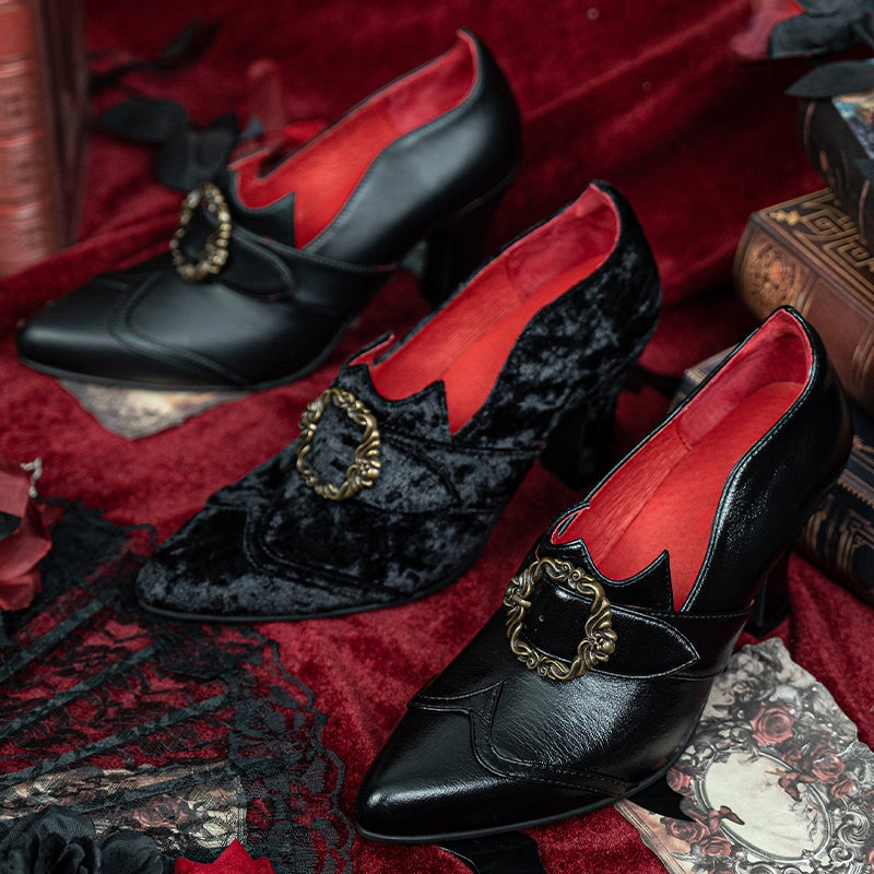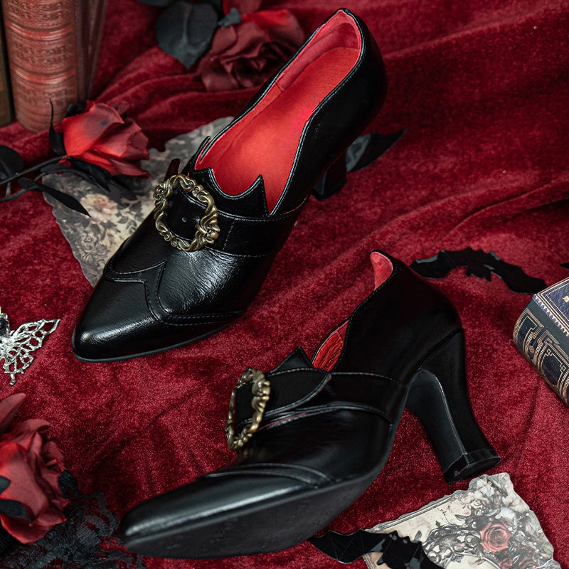 Embrace your inner enchantress with these handmade Gothic Witch pumps, featuring a vintage buckle design and a sleek pointed toe. Crafted from premium matte cowhide, oil-waxed leather, or diamond velvet, each pair exudes dark elegance with a subtle Victorian charm. The 80mm sculpted heel adds graceful height, while the rubber sole ensures comfort and stability. Perfect for Lolita fashion, Gothic outfits, or vintage-inspired looks, these shoes blend mystery, sophistication, and timeless craftsmanship.