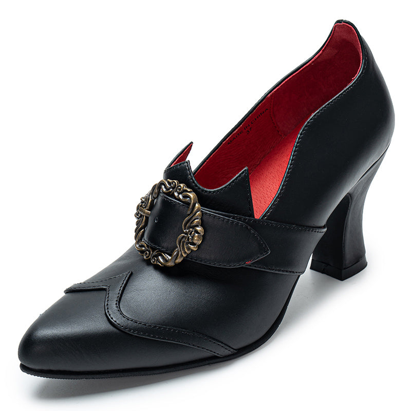 Handmade Gothic Witch Buckle Pumps for Women Vintage Pointed Toe Lolita Shoes in Black