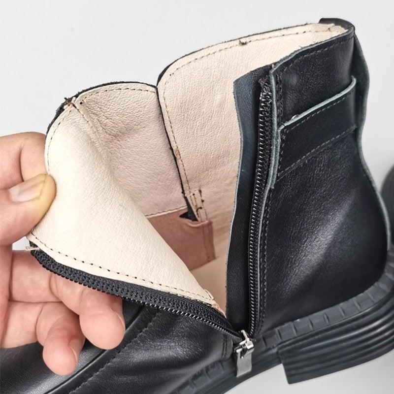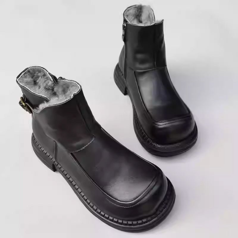 The Upper And Insole Are All Made Of Soft Leather, Flexible And Comfortable. Have Fleece Lined For Winter. Side Zip For Easy On And Off.
