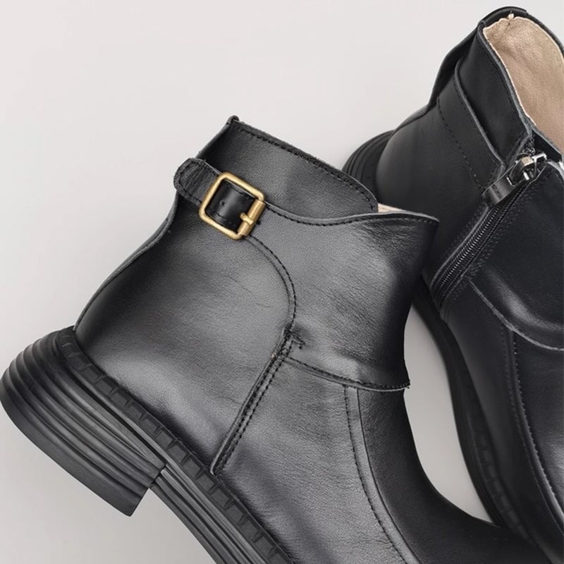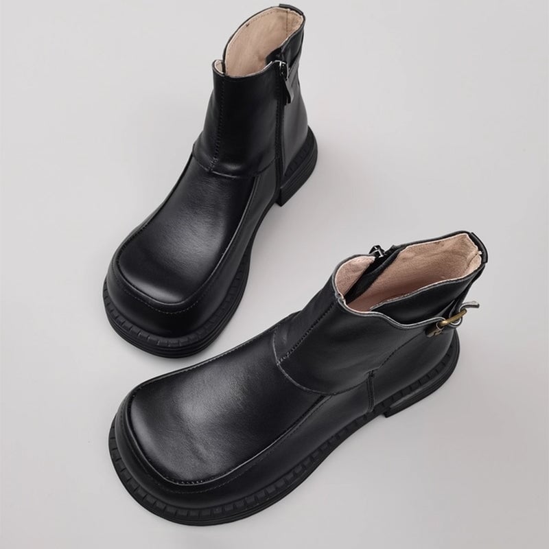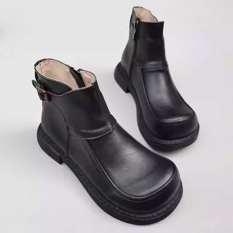 Handmade Leather Big Toe Chelsea Boots For Women Ankle Boots Have Fleece Lined Brown/Black