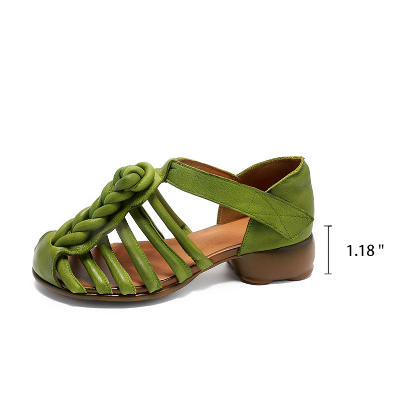 Handmade Leather Gladiator Sandals Retro Woven in Off White/Camel/Green