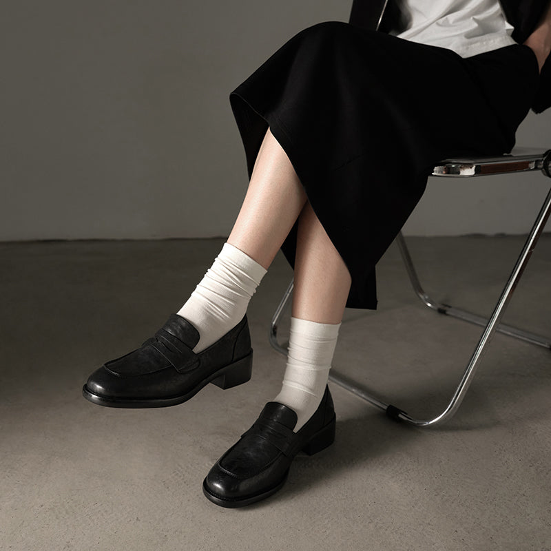 Crafted from premium washed cowhide leather, they offer a naturally soft texture and timeless appeal. The square toe and low block heel create a chic yet easy-to-wear silhouette, perfect for everyday casual looks. Designed for lasting comfort, the high-elastic rubber sole is soft, non-slip, and wear-resistant. Each pair is meticulously handcrafted by experienced artisans durable, elegant, and effortlessly stylish for years to come.