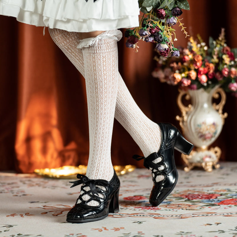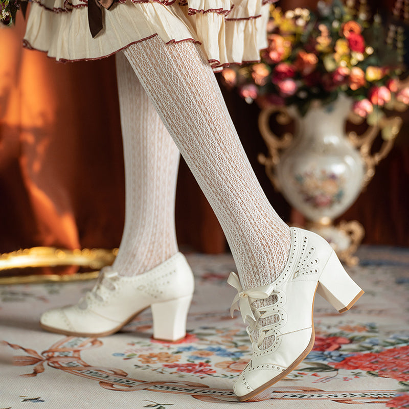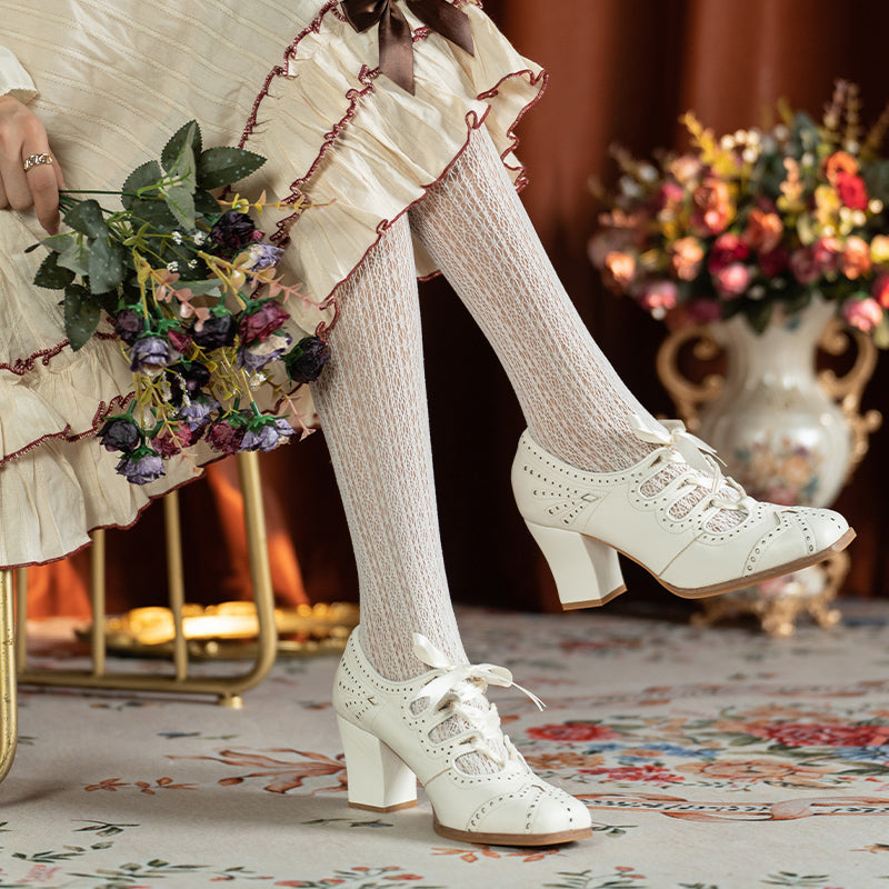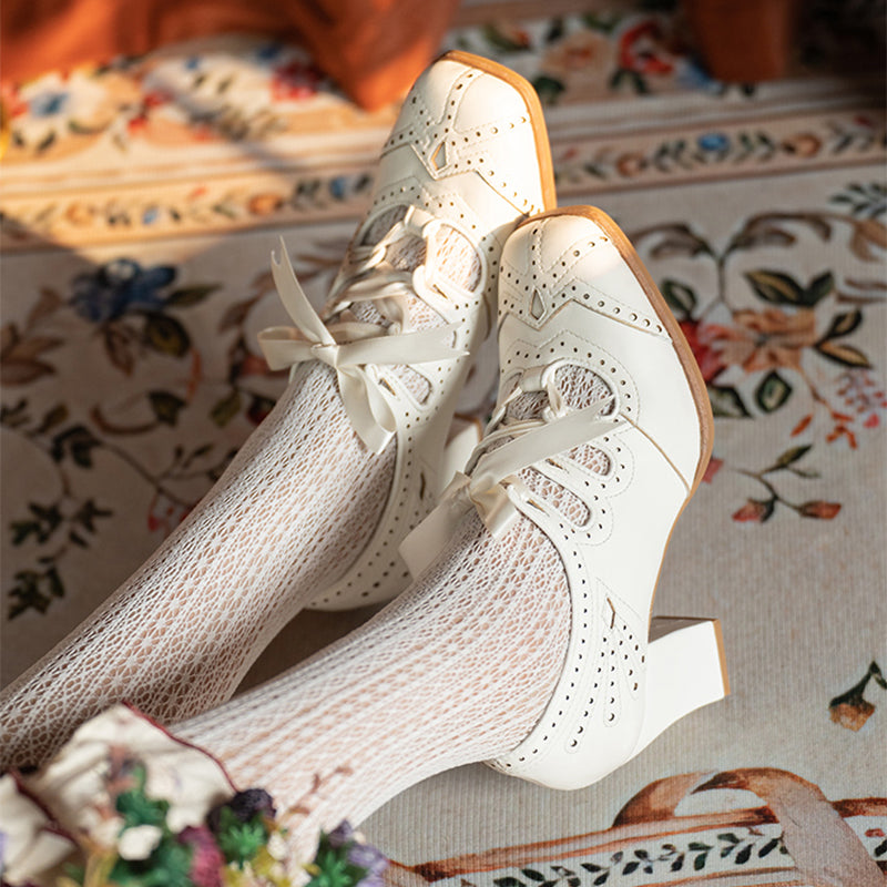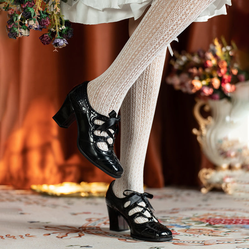 Step into timeless elegance with these handmade vintage Mary Jane pumps, blending British retro charm and modern comfort. Featuring a square toe, delicate lace-up ribbon, and refined brogue detailing, these shoes exude understated sophistication. Crafted from matte soft cowhide leather with a durable rubber sole and a stable 70mm block heel, they offer both beauty and all-day wearability. Perfect for pairing with retro, cottagecore, or classic British-style outfits, these pumps bring graceful femininity to any occasion.