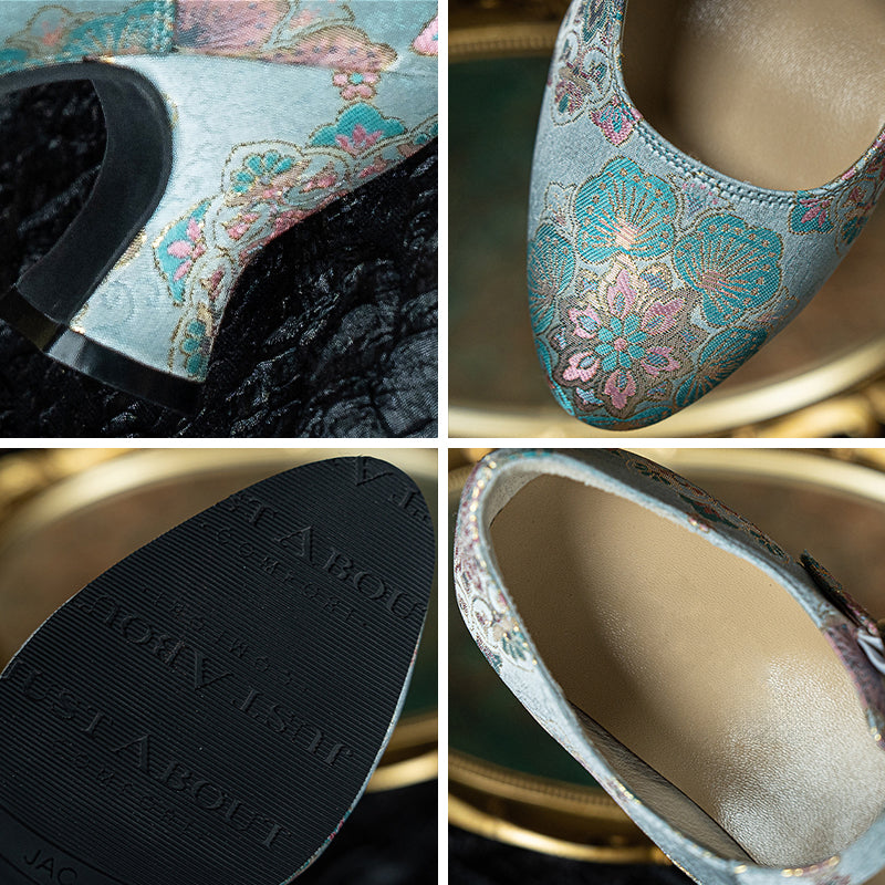 Step into timeless elegance with these Handmade Vintage Mary Jane Jacquard Fabric Pumps, inspired by traditional textiles and modern fashion design.
