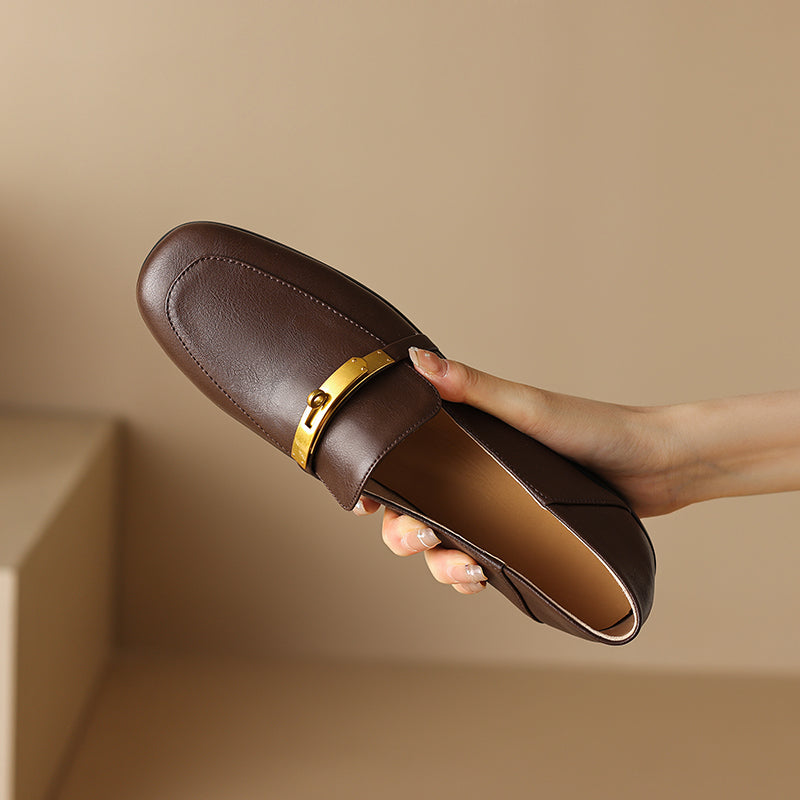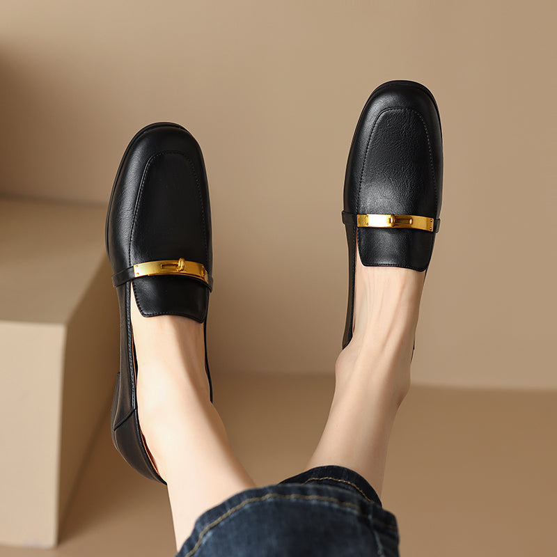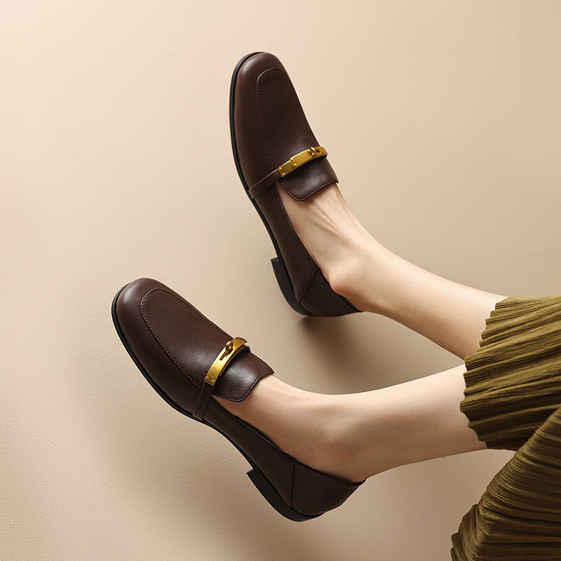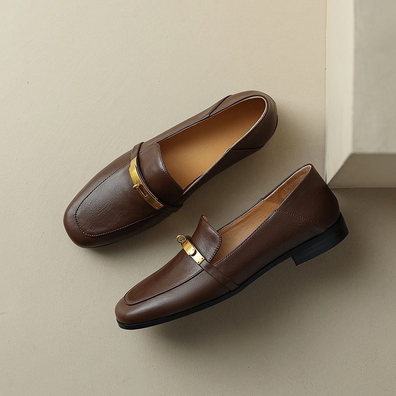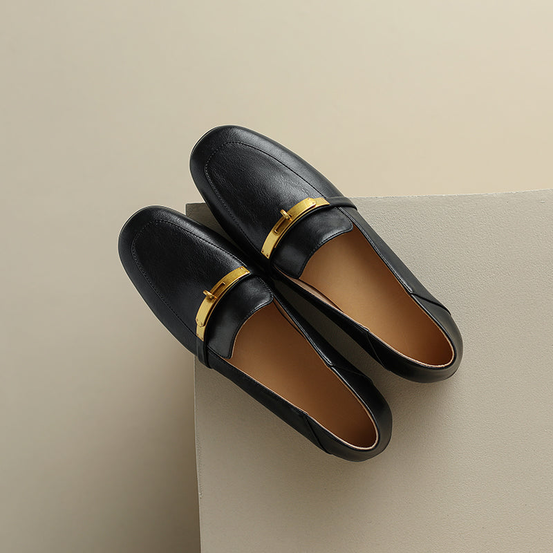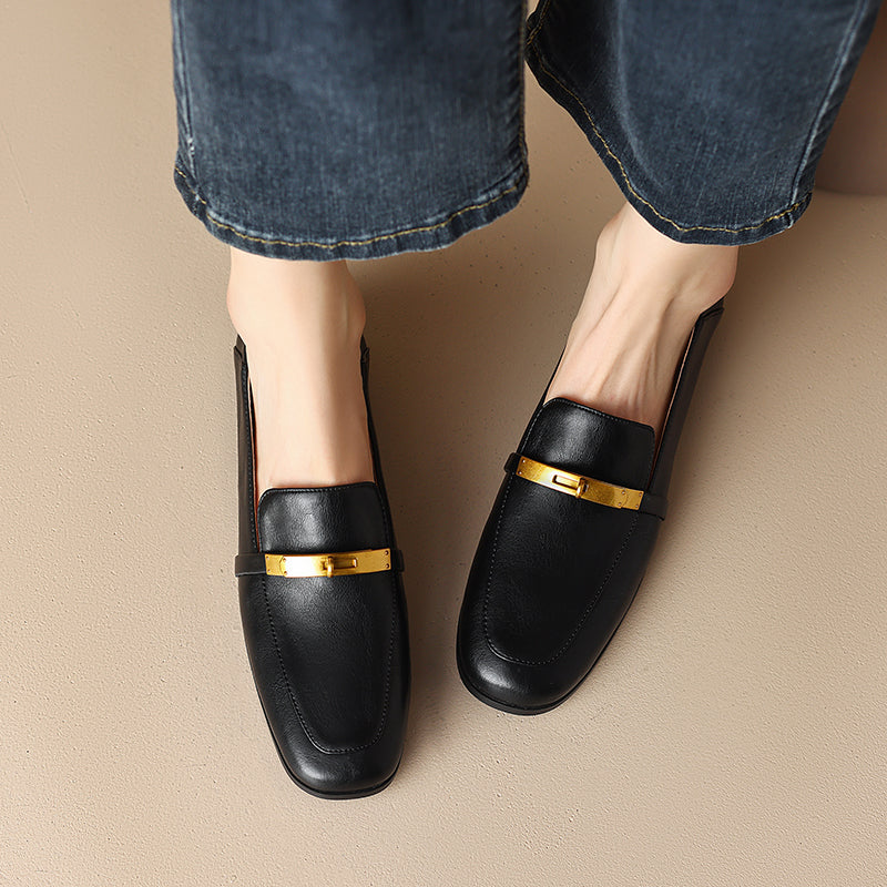 Crafted from premium cow leather, these handmade horsebit loafers feature a chic square toe and elegant gold metal detail for a timeless look. The soft rubber sole is high-elastic, non-slip, and wear-resistant, offering lasting comfort and stability. Each pair is meticulously crafted by experienced artisans to ensure quality and durability for years of wear.