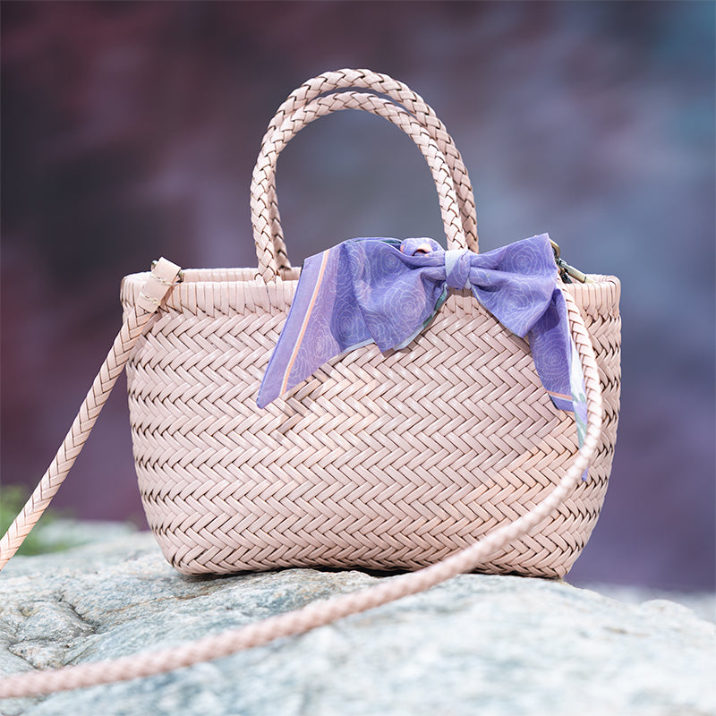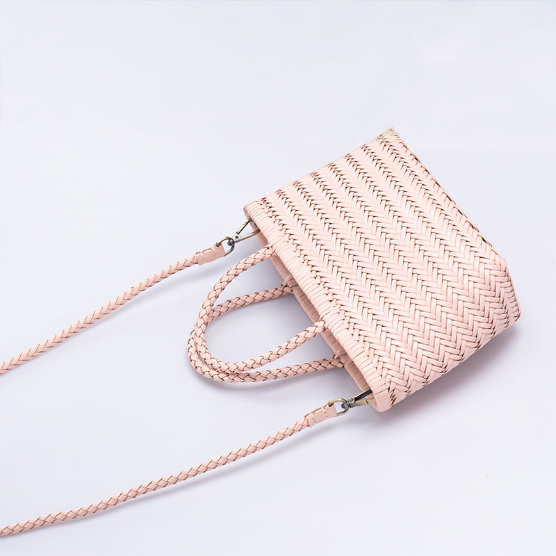 Handmade Woven Cowhide Leather Basket Bag Large Capacity Classic Tote & Crossbody Bag in 5 Colors