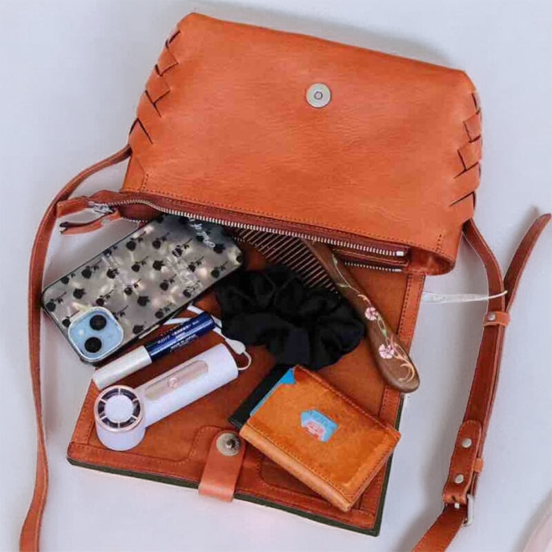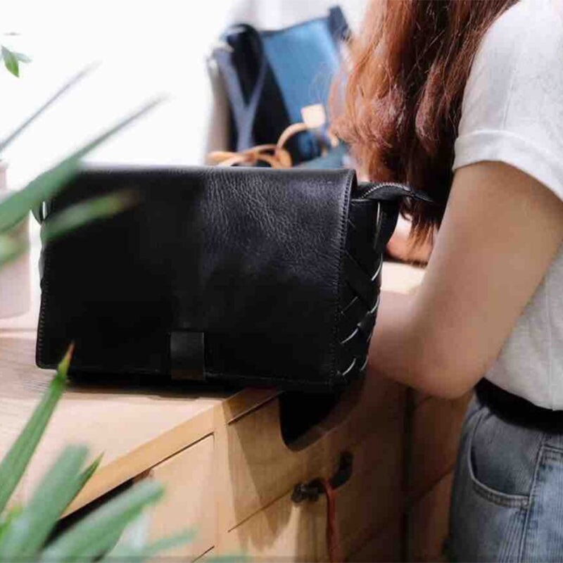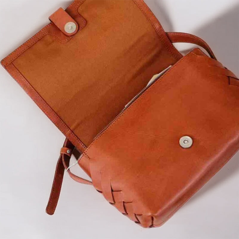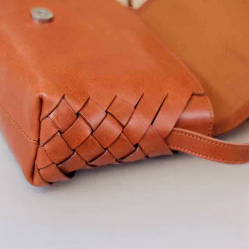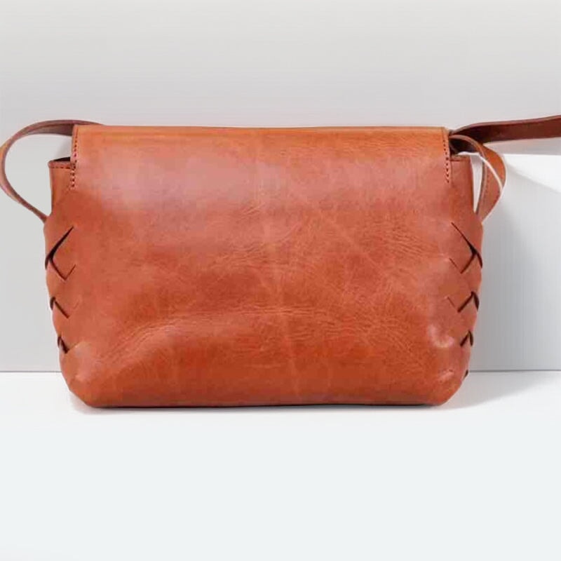 This elegant small square bag is crafted from premium vegetable-tanned cowhide leather with a rich oil-waxed finish, featuring a beautiful handwoven design that highlights timeless craftsmanship and vintage charm. The exquisite stitching and tailoring are completed by skilled artisans, ensuring superior durability and long-lasting quality. Compact yet practical, this bag is perfect for carrying your daily essentials.