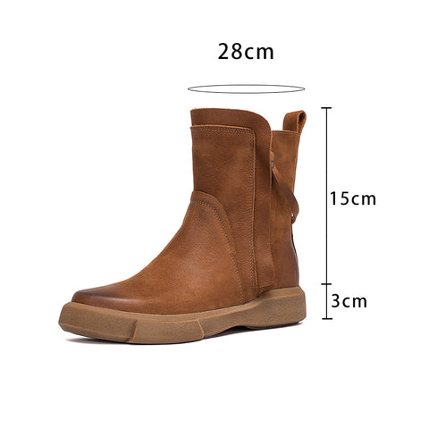 Dwarves Side Zipper Chelsea Boots Waxing Leather Short Boots for Winter Black/Coffee