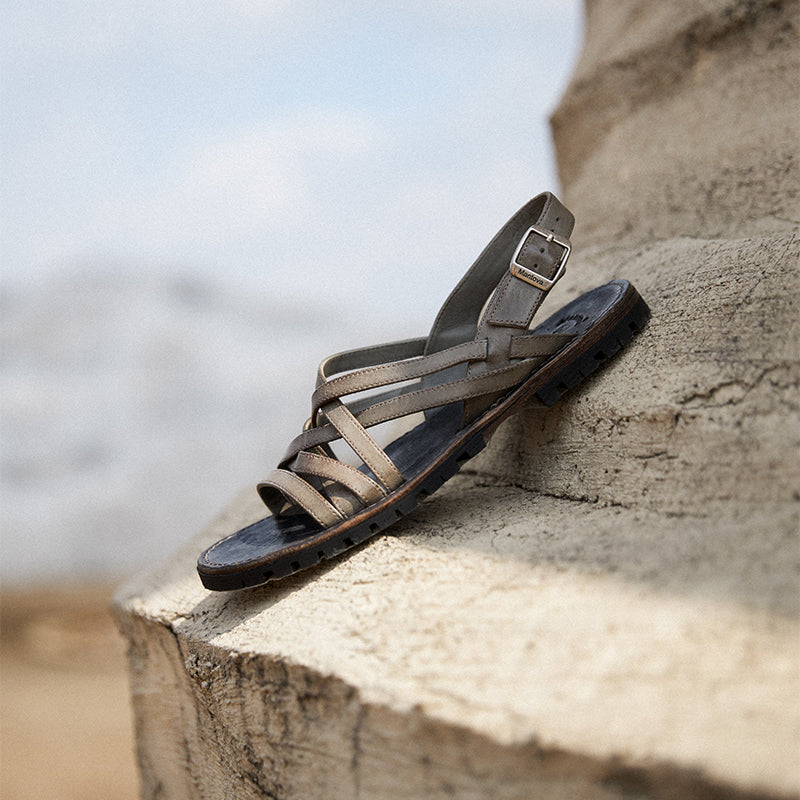 Vintage Handmade Horse Leather Flat Gladiator Slingback Sandals for Women Roman Style in Coffee/Light Silver Grey