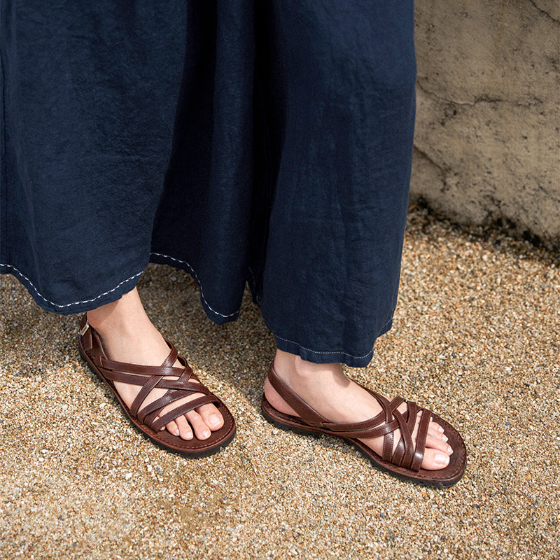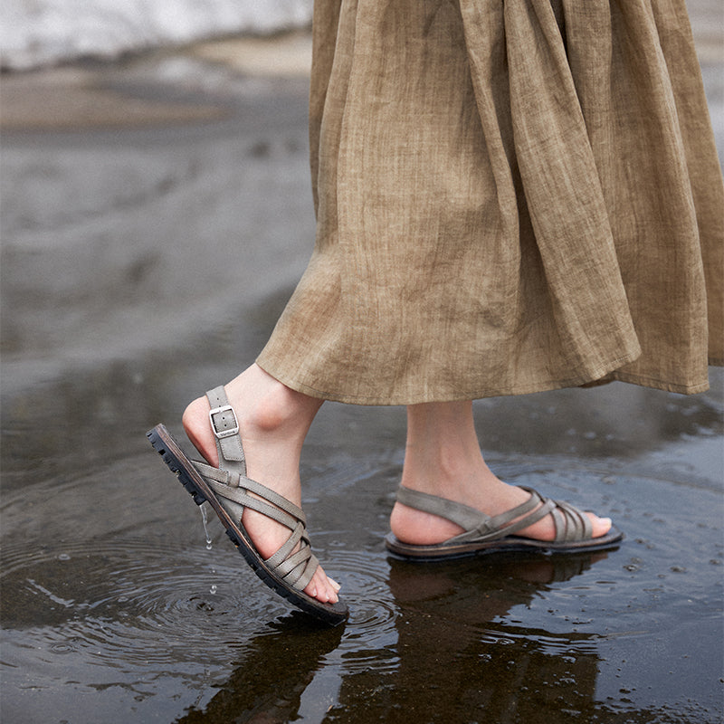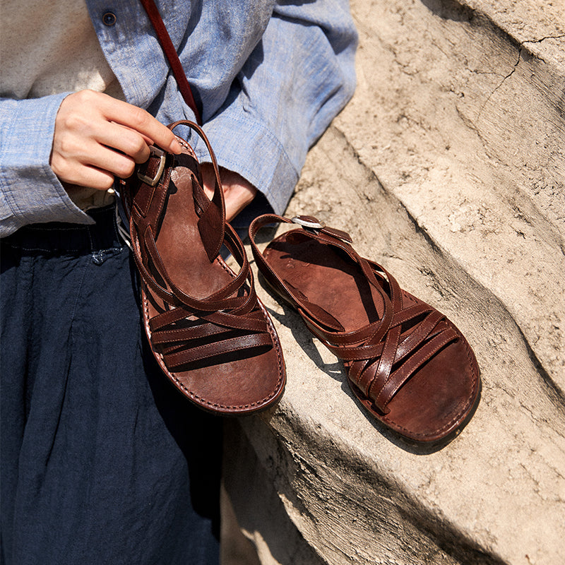 Step into timeless comfort with these vintage-inspired gladiator slingback sandals, crafted from premium horsehide leather. Featuring elegant criss-cross straps and a secure open-toe design, these flat Roman-style sandals are perfect for casual days and everyday adventures. The soft sole provides flexibility and grip, making them ideal for city strolls or laid-back escapes. A perfect blend of retro style and modern wearability.