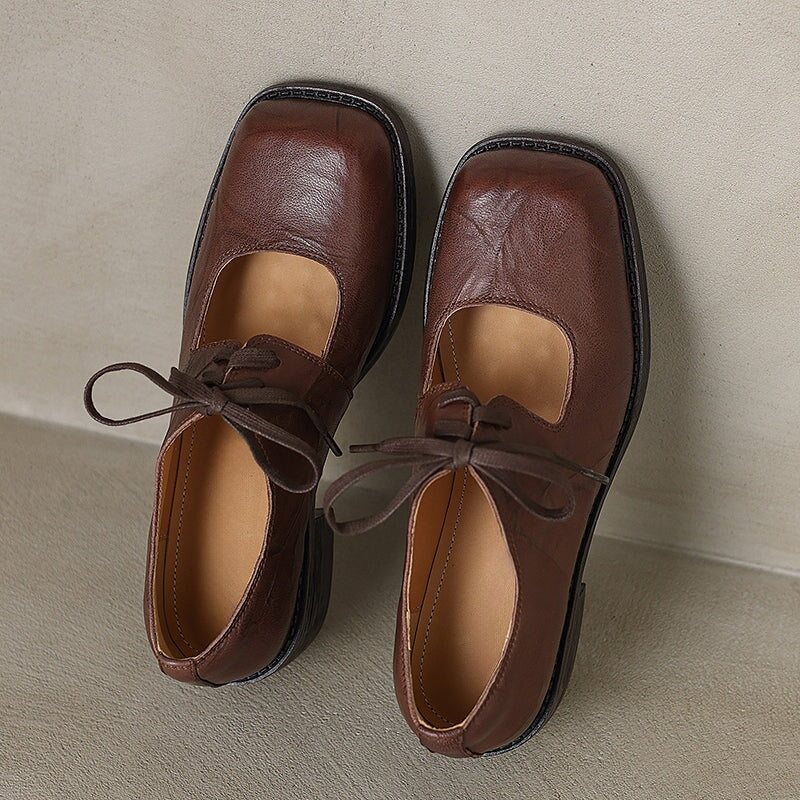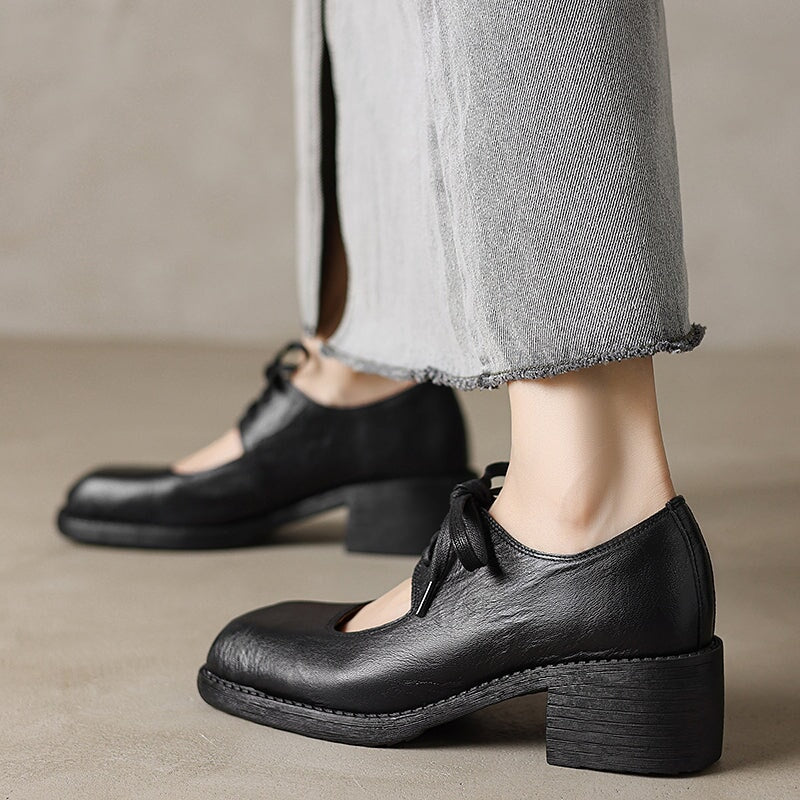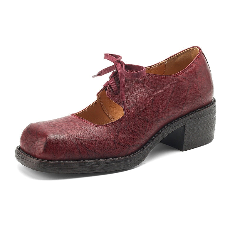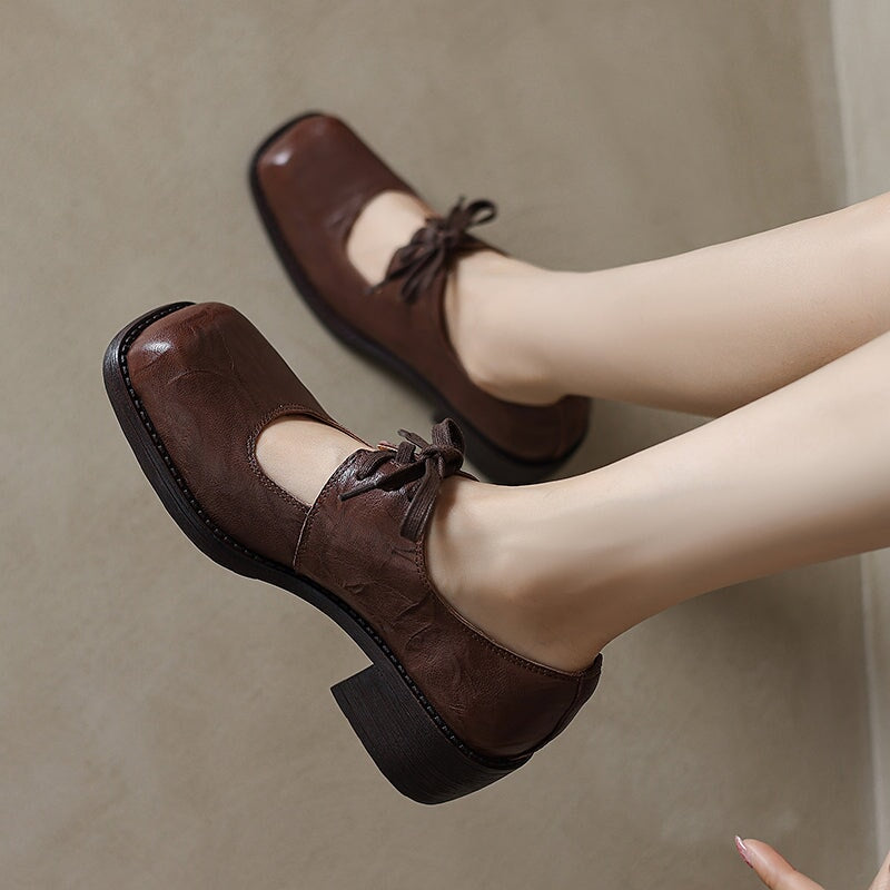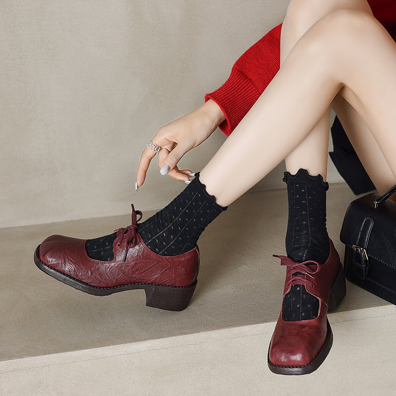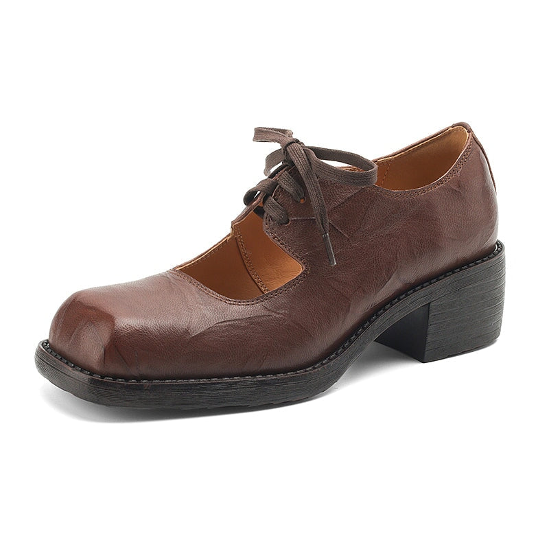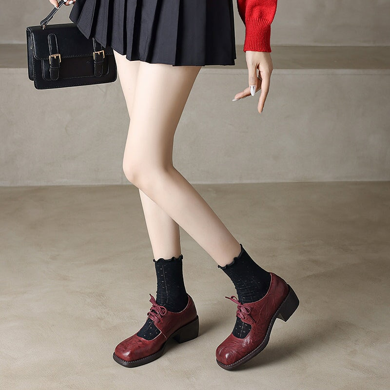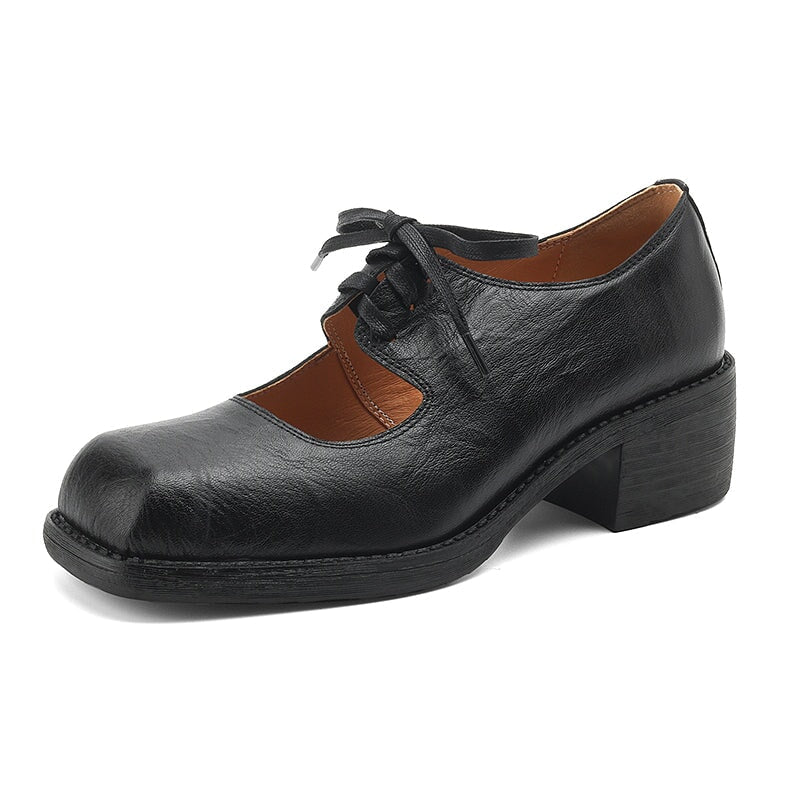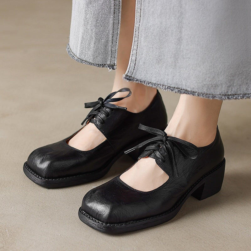 Crafted from soft hand-scratched sheepskin, these Vintage Mary Jane Shoes feature a square toe and elegant lace-up design for a timeless, preppy look. The 50mm block heel adds comfortable height, while the high-elastic rubber sole is soft, non-slip, and wear-resistant. Each pair is handmade by experienced craftsmen, ensuring lasting quality and all-day comfort perfect for casual or office wear.
