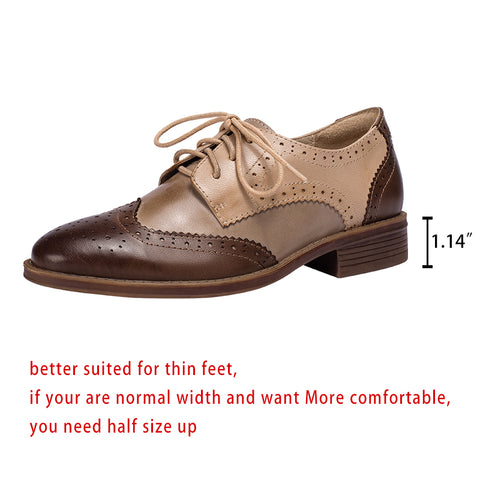 Dwarves Women's Wingtip Shoes Handmade Sheepskin Full Brogues Oxfords Low Heel Elegant Color Blocking(better suited for thin feet)