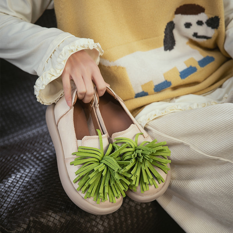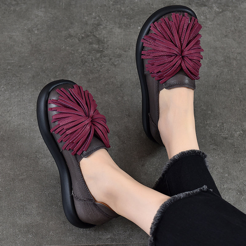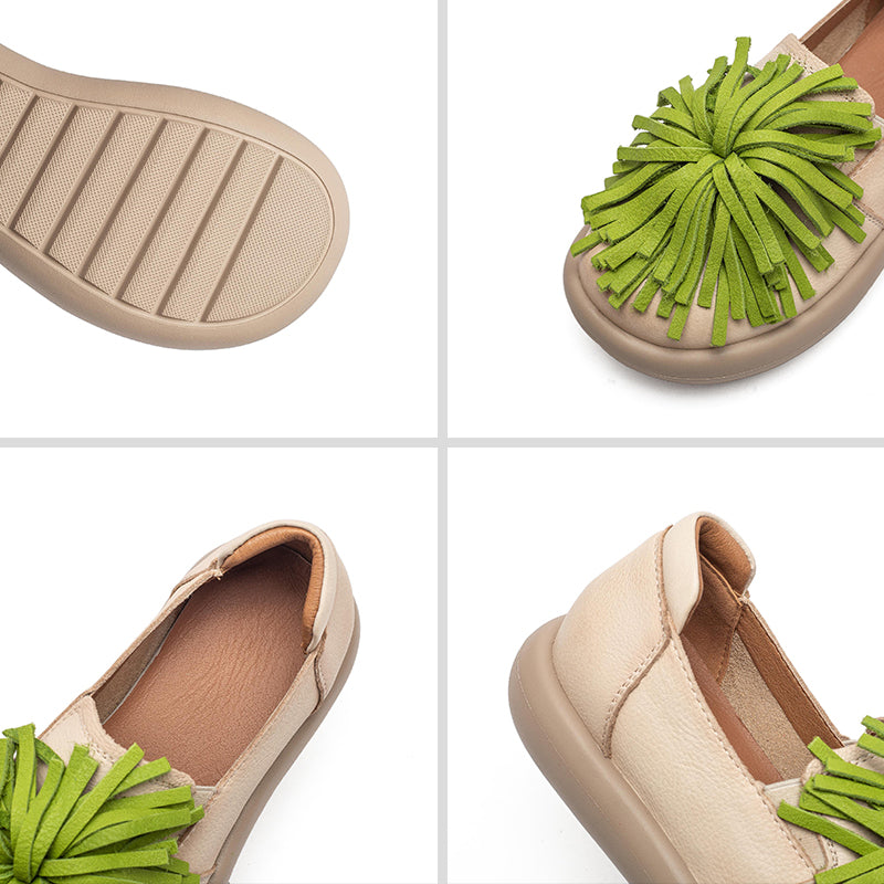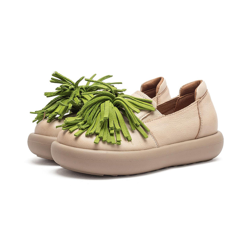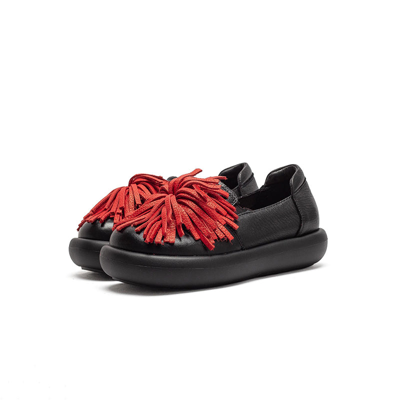 Women’s Casual Platform Leather Tassel Slip-On Loafers in 3 Colors