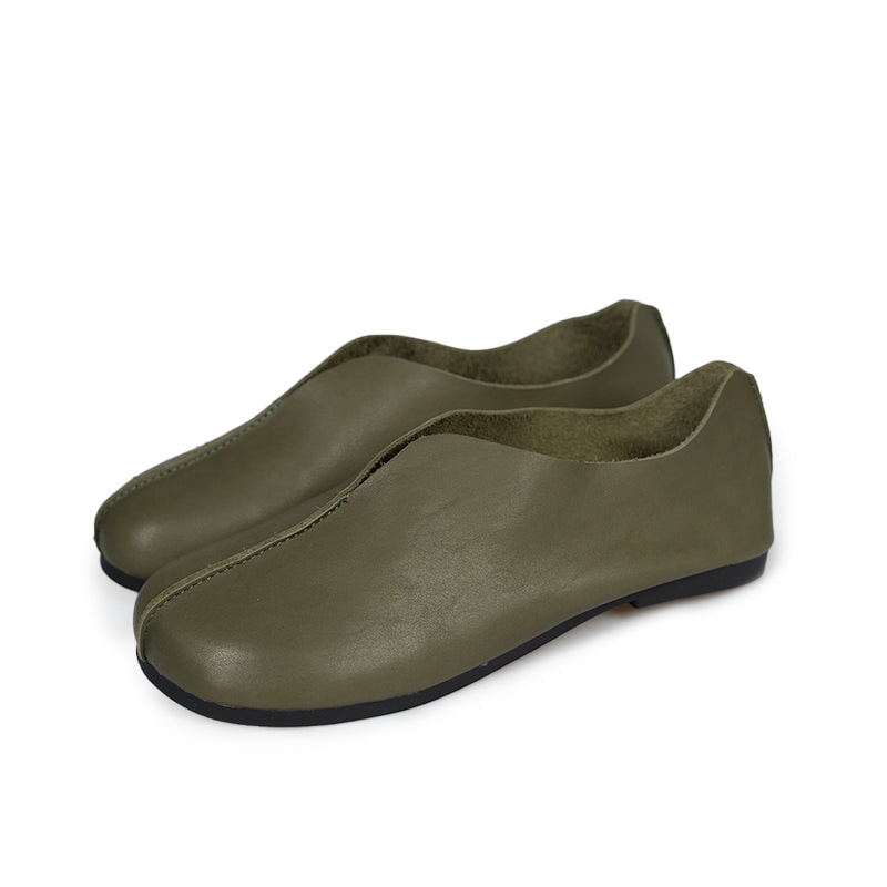 Women's Vintage Leather Slip-On Loafers Mori Girl Round Toe Casual Barefoot Flats in Red/Black/Apricot/Coffee/Grey
