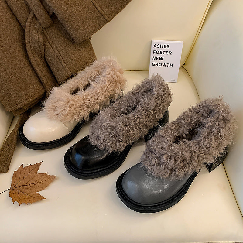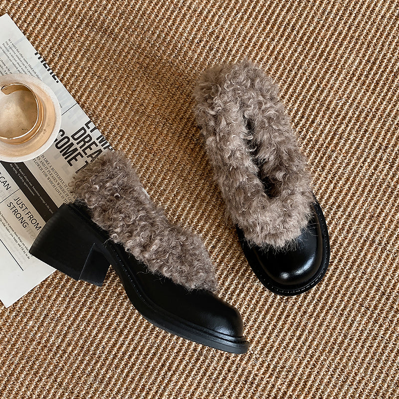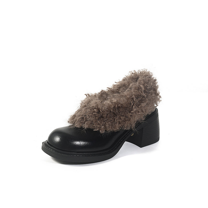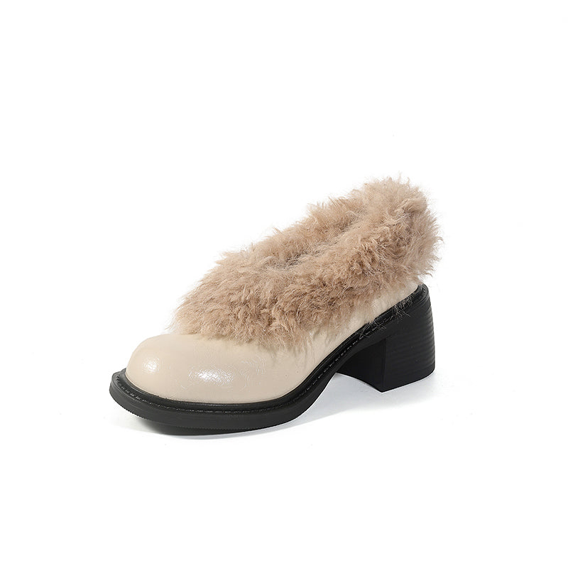 These winter-ready women’s pumps combine warmth, comfort, and everyday style. Made from durable split cow leather, the shoes feature a soft shaggy finish and a cozy faux plush lining that keeps your feet warm in cold weather. The classic round toe offers a relaxed fit, while the sturdy block heel provides stable support for all-day wear. Finished with a nonslip rubber outsole, these casual winter pumps deliver comfort, practicality, and seasonal charm—perfect for daily outfits, work, or relaxed weekend looks.